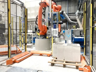 Aerated concrete is light but stable, resilient but non-combustible and provides good thermal insulation. No wonder that shaped blocks made of aerated concrete are very popular in house construction. PORFIX - pórobetón, a.s. is the leading manufacturer in Slovakia of plane and partition blocks, lintels and U-profiles made of this mineral building material. A robot cell has recently been installed in the production hall in Zemianske Kostolany, in the heart of Slovakia: Blumenbecker Slovakia s.r.o. developed a prototype for bonding U-profiles in close cooperation with Porfix.
