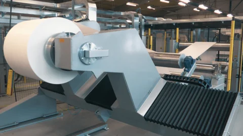 Jede Maschine besteht aus einem axialen Abwickler, einem Mittelteil, der aus Zugtrennern und einem Schneidteil besteht, und einem axialen Aufwickler. Dazu gehören Mechanismen zum Aufwickeln und Laden der Rolle auf den Abwickler und ähnliche Mechanismen zum Abladen der aufgewickelten Rolle vom Wickler.